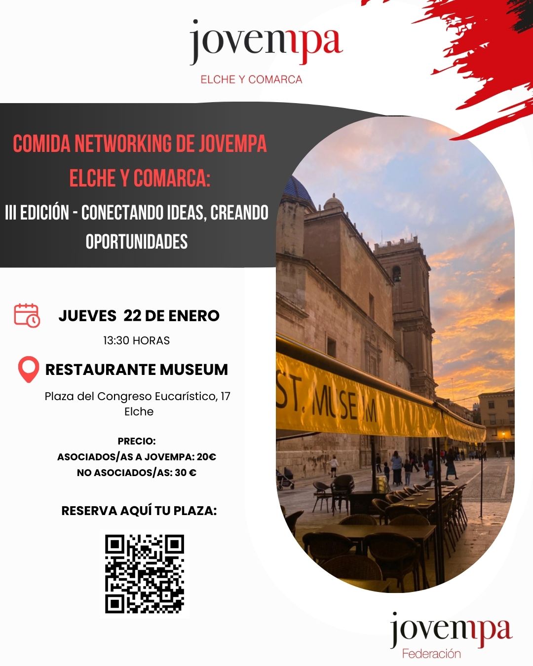 El próximo jueves 22 de enero a las 13:30 horas nos reuniremos en el Restaurante Museum de Elche para disfrutar de un encuentro empresarial pensado para fomentar el networking y las oportunidades de colaboración.