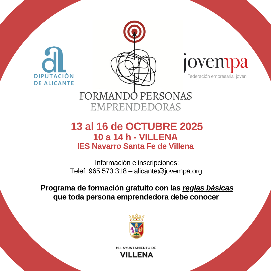 El programa Formando Personas Emprendedoras está organizado por JOVEMPA, con la colaboración de la Diputación de Alicante y el apoyo de entidades locales de cada municipio.