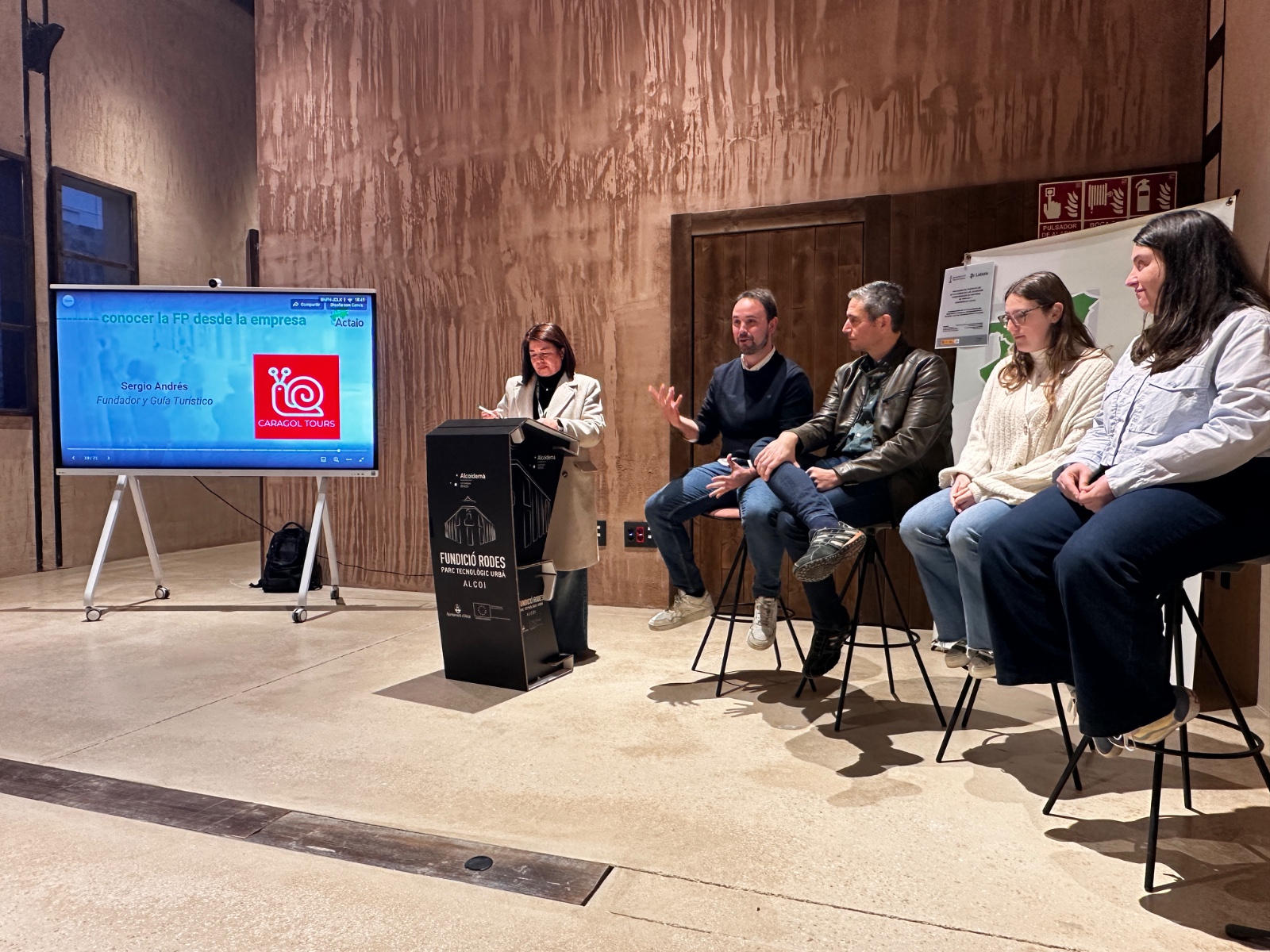 Por la tarde, en la charla ‘Oportunidades de trabajo en nuestro territorio desde la FP’ participaron Salvador Serrallé, responsable de la oficina de información y orientación profesional de la Xarxa Orienta FP; Natxo Gómez, director de Europreven; Andrea Pérez y Cintia Cantó, técnicas informáticas en Europreven y Sergio Andrés, fundador de Caragol Tours y vicepresidente de Jovempa Alcoiá Comtat i Foia, compartiendo sus experiencias como estudiantes en FP y luego su incorporación al mundo laboral y al emprendimiento.